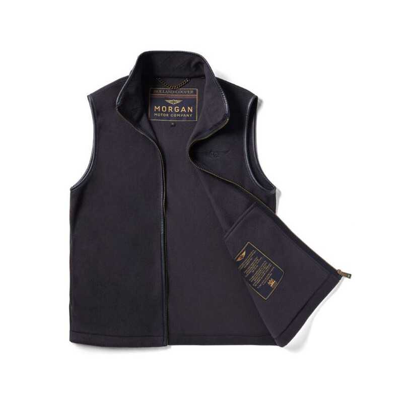 Accented with faux leather piping and subtle HC x Morgan embroidery on the chest, it features discreet, seamed pockets for a sleek, streamlined fit. Finished with our iconic antique brass fastenings and metal hardware, it combines rugged sophistication with functionality for a truly timeless British look.